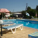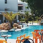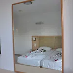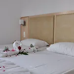 Vårt ganska stora och luftiga rum hade terrass och balkong. Läget var tyst och perfekt. Grill House Sakis i närheten, där vi kunde äta. Vi älskade det här stället.